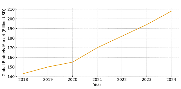 The expanding demand for renewable fuel components is evident in the steady growth of the global biofuels market. From 2018 to 2024, the sector moved from USD 143 billion to more than USD 208 billion, driven by tightening emissions mandates, government incentives, and renewed investment in sustainable energy technologies. ETBE benefits directly from this upward trend, as its use is closely tied to ethanol production, renewable fuel quotas, and evolving gasoline specifications.